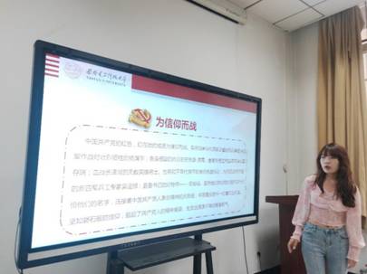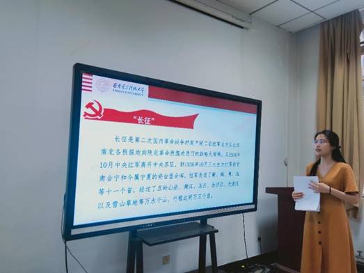 接下来由来自WILLIAMHILL在线体育投注的研究生史林鹰进行宣讲。她以毛泽东主席在长征途中创作的脍炙人口的诗词为切入点,从历史事实出发,通过一组组详实震撼的数据带领同学们回顾了红军艰难的长征路。长征是中国革命史上的奇迹,世界军事史上的伟大壮举。它在世界人民的心中,是一部不朽的英雄史诗。