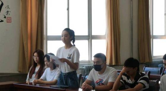 而后,研究生新生代表张帆发言。她分享了自己本科和研究生支教期间的经历,讲到从本科生到研究生身份与心态上均发生了转变。她讲到:“在未来的三年里,希望我们可以保持学习的热情,专心钻研“真问题”,不断提升学术修养,同时,认真做好人生规划,抓住实习实践机会,努力提升自己的综合能力。”