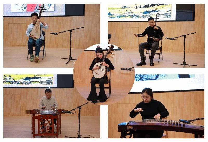 为了使讲座内容更加生动有趣,陕西广播电视民族乐团/陕西民族乐团的多位艺术家配合讲座演奏了《塞上曲》《秋夜筝》《天山诗画》《二泉映月》等经典国乐名曲。悠扬的乐声仿佛穿越时空,将听众带入了一个充满诗意和想象的空间。艺术家们精湛的技艺和深情的演绎赢得了现场师生的阵阵掌声。
