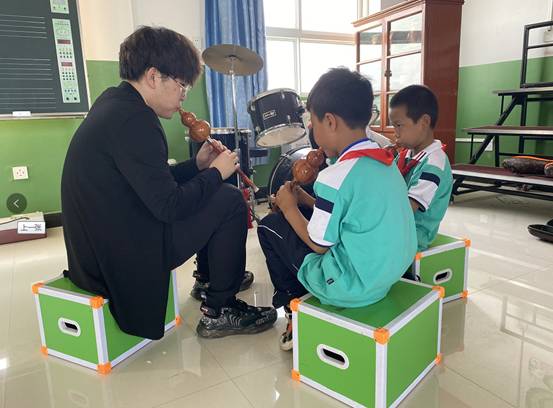 经过长达一个学期的教与学,员工们已经能够熟练掌握各乐器的演奏技巧并独立演奏一首简单的乐曲,乡村美育的效果初显,老员工在其间不仅体验到初为人师辛苦,更体会到将音乐传授给他人的快乐。自项目开展以来,大学们凭借着对音乐的热爱和对乡村振兴战略的信心,一次次地跨越一百多公里的距离,迎着骄阳而去,披着星辰而归。