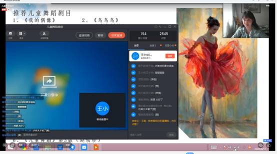 据不完全统计,在这次连续五天的培训在线课程,累计有900多人次参加,最多一次课有190人在线学习,每次课堂参与培训的提问和留言十分积极、热烈,留言最多时一次课达到上百条,点赞数则更多。根据蒲城教育局负责老师反馈,“课程质量很棒,直播效果良好”,“此次线上培训活动效果非常理想”。许多参加培训的老师反映,培训课程内容涉及小学音乐课程教学设计、声乐、合唱、舞蹈以及小学音乐歌曲编排等,具有极强的针对性和实用性,“希望以后还能有机会向西电老师学习”。