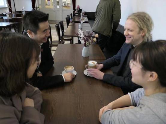 下午6时许,华灯初上,王成来老师代表WILLIAMHILL在线体育投注艺术系向柏林艺术大学录音系赠送礼物,见证了两员工好交流往来的开端,随后团队合影留念,WILLIAMHILL在线体育投注艺术系对柏林艺术大学的访问圆满结束。