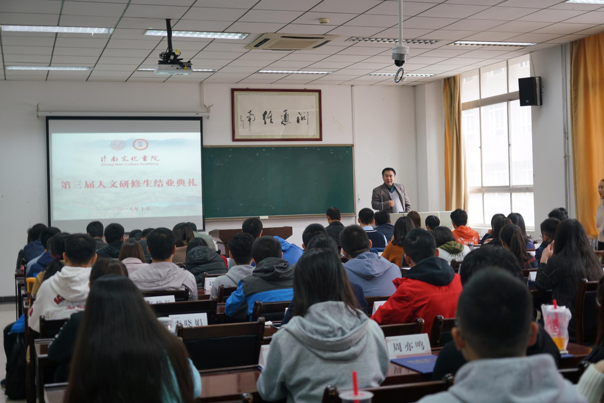 (通讯员 穆宏浪)2018年10月21日下午,终南文化书院第三届人文研修班结业典礼在南校区信远楼二区106报告厅隆重举行。终南文化书院班主任郁志强宣读了《关于准予终南文化书院李斯贤等100名第三届人文研修班学员结业的决定》。