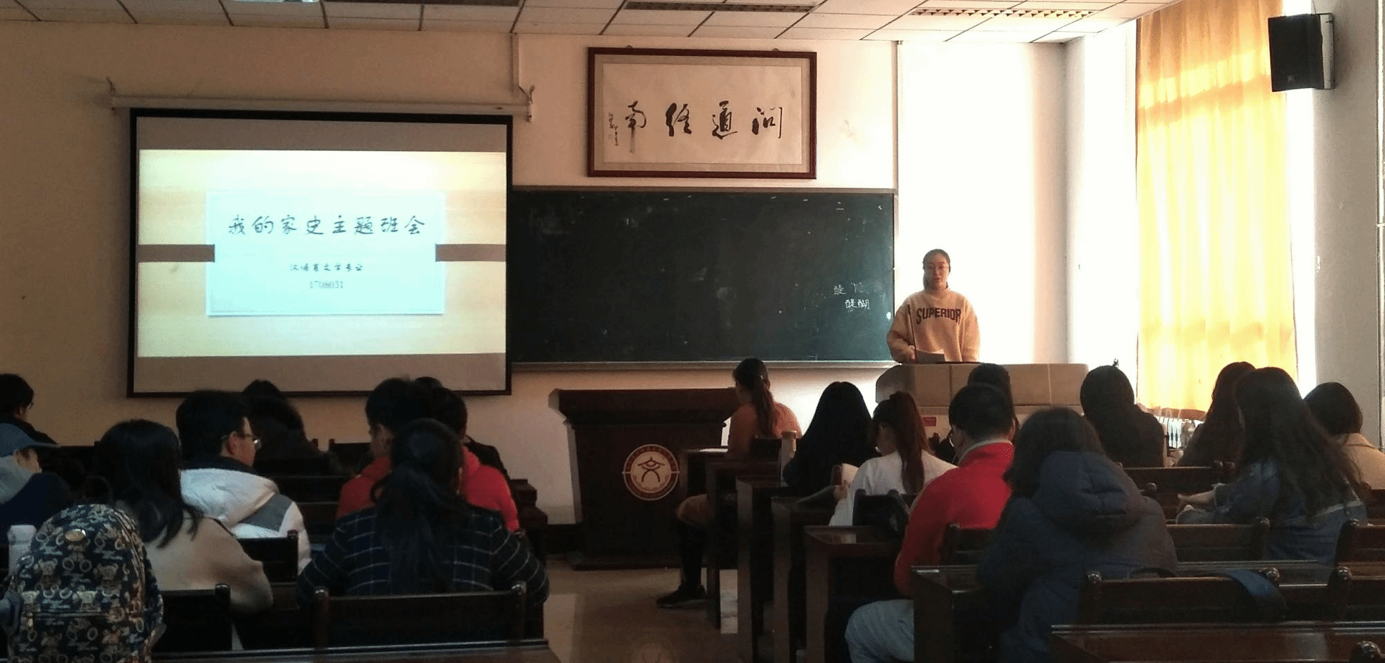 (通讯员:陈明哲)光阴,驹过隙,似箭流。转眼假期飞逝,新学期阔步而来,一切步入正轨。为弘扬优秀传统家风、检验假期学习成果、打开新学期新局面,3月8日下午4点,1708031班在信远楼106教室顺利开展“晒家风、讲家史”主题班会,辅导员郭雨晴出席班会,汉语言班全员参与并发言。