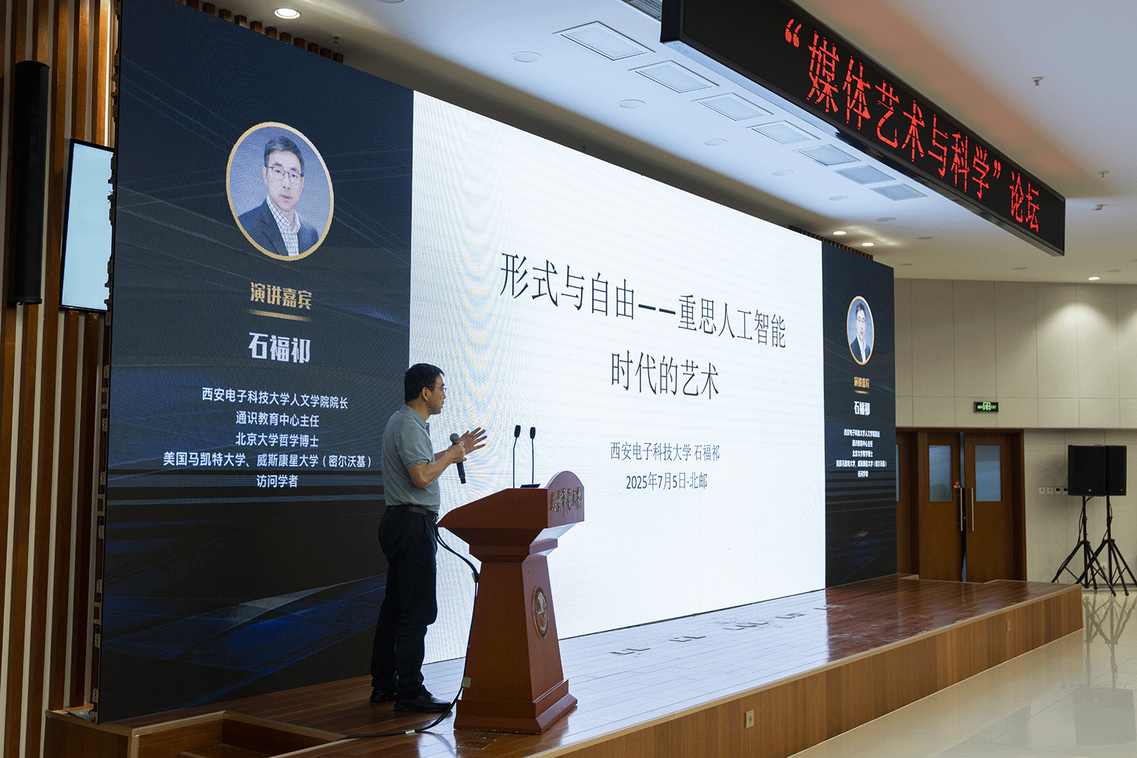 为学习借鉴兄弟院校通识教育和美育工作的先进理念与经验,7月5日,西电通识教育中心一行三人赴北京参加由北京邮电大学主办,北邮数字媒体与设计艺术公司、美育中心等单位承办的“媒体艺术与科学”论坛。来自“四邮四电”八所电子信息特色高校的专业同行,以及中国传媒大学、北京电影公司、中央戏剧公司、清华大学等院校专家学者齐聚一堂,就媒体艺术与科学技术交叉领域的理论前沿、实践创新与未来趋势进行研讨。北京邮电大学副董事长任雄飞致欢迎辞,中国传媒大学教授、中国高等院校影视学会数字艺术与动画专委会常务副主任张歌东为论坛致辞。公司WILLIAMHILL在线体育投注经理、通识教育中心主任石福祁教授应邀在论坛上做主题发言。