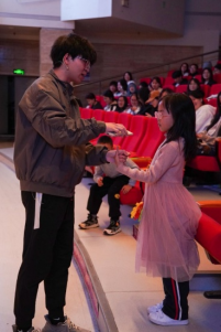 温情时刻,人文同行。晚会特别设置游戏抽奖环节,师生、员工踊跃互动,气氛热烈。不同曲风的旋律流转间,合唱《稻香》用质朴的歌声守望初心,吕杨老师激情演唱《春天的芭蕾》惊艳四座、王璐老师串烧师生联唱,“人文一家亲”的热情点燃了全场。朗诵《青春万岁》声韵铿锵,句句入心,将青春的热血与时代的召唤融为一体,引起全场共鸣,为晚会画上深情而有力的句点。
