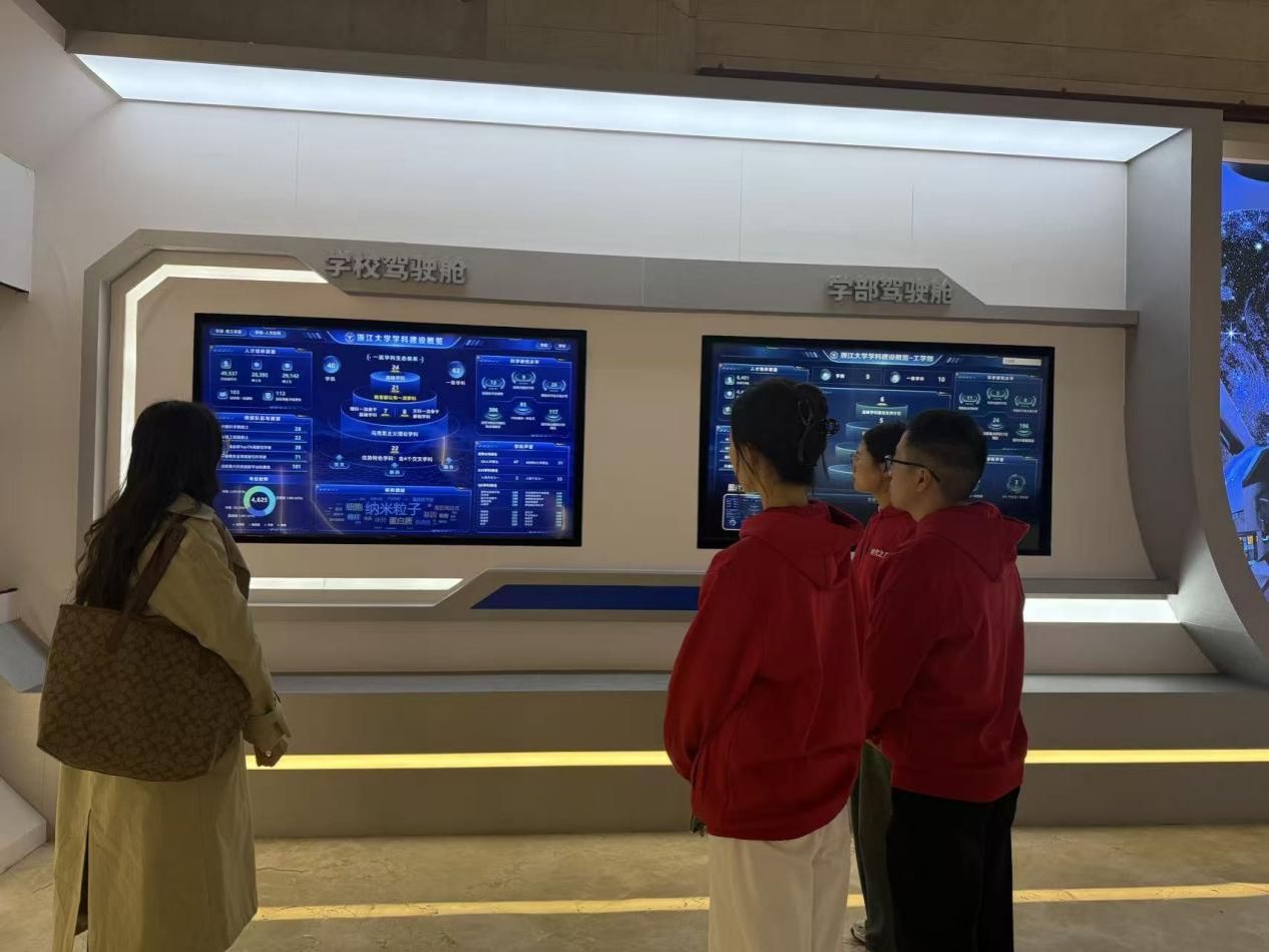 浙江大学研究生理论宣讲团从浙江大学科技成果展馆展开介绍,开展沉浸式宣讲活动。从“求是创新”这一具有百年历史的校训出发,延伸至“天目”“莫干”等一系列契合国家重大战略需求的科研突破成果,生动呈现出“只问是非,不计利害”的科学精神以及深厚的家国情怀。宣讲团团长着重介绍了以理论学习、技能培训、主题调研、实践提升和微型党课比赛为核心要素的“五位一体”工作模式,以及以“三会三训”为特色的制度化培训体系,旨在构建一个规范化、系统化的理论学习与人才培养闭环。