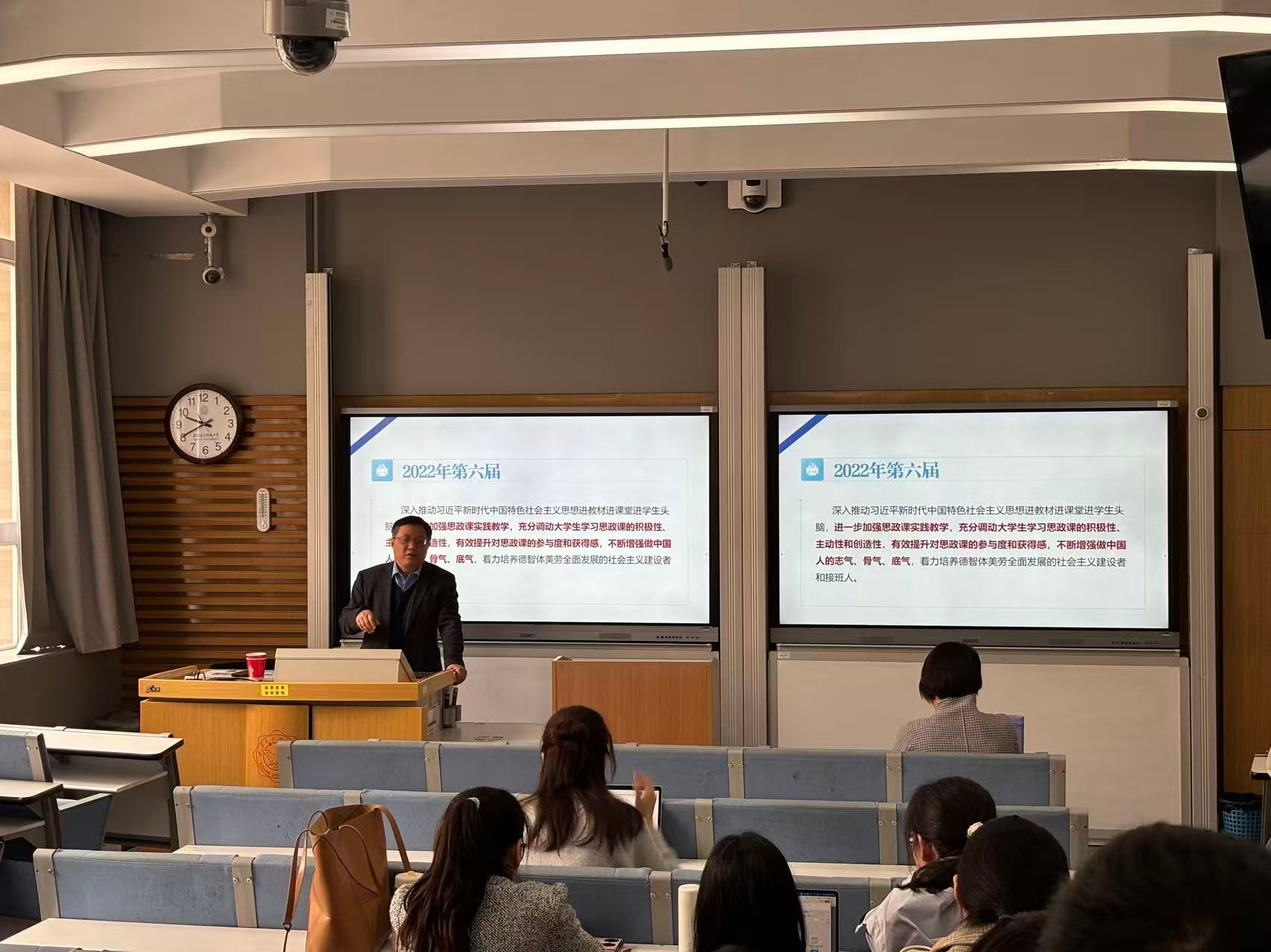 袁文伟教授以教育部“习近平新时代中国特色社会主义思想大学习领航计划系列主题活动”的理念与内容为导入,强调思政课不应停留在书本和课堂,而应通过艺术展、公开课、微电影、夏令营等形式,将教改融入员工成长中,以增强员工学习的主动性、积极性与获得感。他以西安邮电大学“微电影+思政”实践为例,讲述了员工前往红光沟航天精神教育基地、陕西延安、新疆塔里木大学等地拍摄思政课微电影的真实故事,以及由此诞生了《如愿》《我的托克拉克》《代号067—矢志不渝,筑梦九天》等优秀作品。培训结束后,袁文伟教授与前来的青年教师们展开了友好的交流互动。