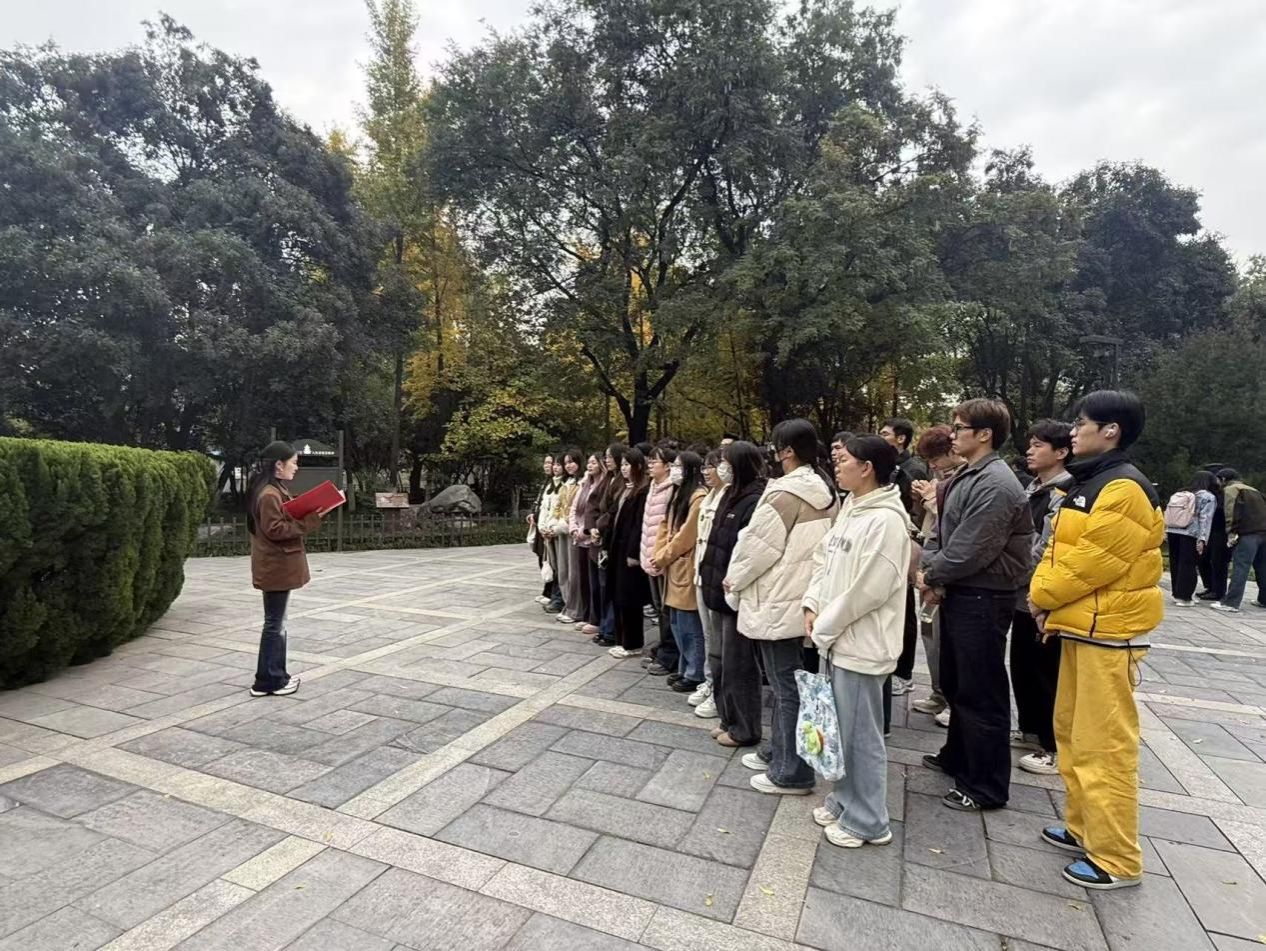 在革命公园杨虎城将军雕像前,宣讲团成员通过讲述革命先辈在民族危亡之际秉持崇高理想信念、勇于担当使命的英雄事迹,深刻阐释了其中蕴含的以民族解放为重的革命精神与爱国情怀。“先辈用生命践行的理想,正是革命文化的鲜活注脚。”宣讲者深情的讲述使在场师生深刻认识到,革命文化绝非抽象的概念——它体现在革命先烈用鲜血和生命铸就的伟大精神丰碑之中,是先辈在危难中坚守的理想信念,是中华民族血脉中传承的宝贵精神财富,更是文化自信最深厚的力量源泉,为公司研究生传承红色基因提供了坚实的思想保障。