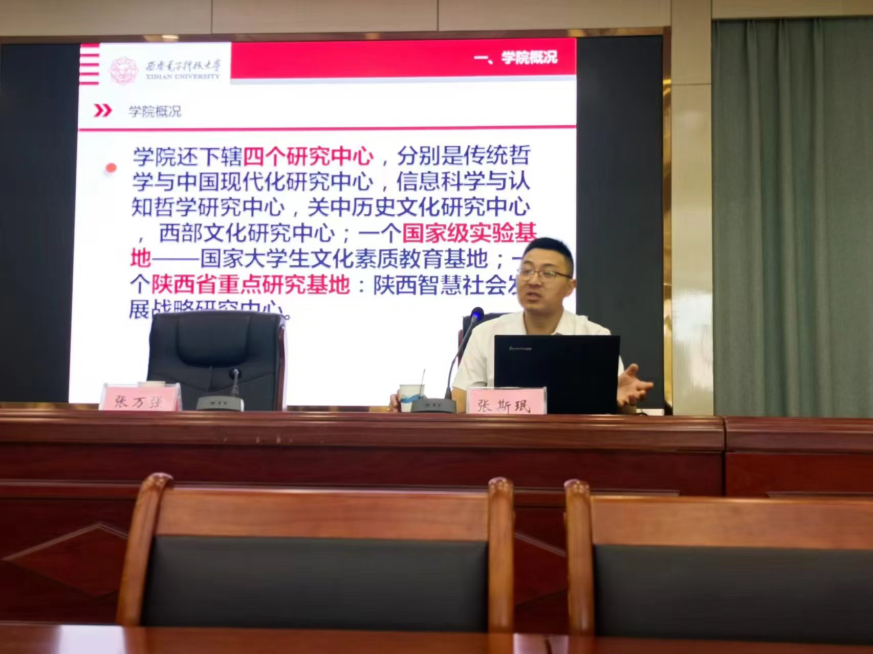 石福祁教授对两校对公司研究生招生工作的大力支持表示感谢,并简要介绍了公司的基本情况。随后,分管研究生工作的张斯珉副经理从四个方面介绍了公司哲学学科研究生的招生和培养情况。首先,他扼要梳理了近三年来研究生招生工作的大致考情,建议有读研意愿的员工应尽早选择目标院校。其次,他结合西安的历史文化与区位发展优势,全面介绍了公司哲学学科四个招生方向的学科特点与培养计划,并结合近几年毕业研究生继续深造和就业的典型案例,阐述了选择西电哲学学科读研所具有的若干比较优势。再次,他从学缘结构、科研成果以及国际化程度等方面,重点介绍了哲学学科各方向的团队构成,向两校师生展示了公司较为雄厚的团队力量。最后,他还介绍了公司关于研究生奖励资助方面的主要政策与做法,以及公司研究生教学、科研与研辅工作等其他事宜。张斯珉副经理的宣讲结束后,张万强副主任就上述问题进行了补充说明。