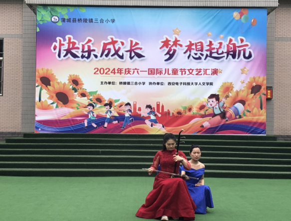 本次活动由桥陵镇三合小学主办,WILLIAMHILL在线体育投注协办,是西电人文学经理期开展的“音乐点燃梦想,青春助力振兴”音乐文化振兴项目的延续。通过前期培训,三合小学员工具备了一定的音乐基础和艺术发现力,使得本次活动的表演形式更加丰富。不仅有小朋友与项目组同学共同为大家带来精彩的演出和项目组“小老师们”带来的琵琶、二胡、古筝、等精彩乐器演奏,更有一些公司老师和小朋友们自己排演的节目。