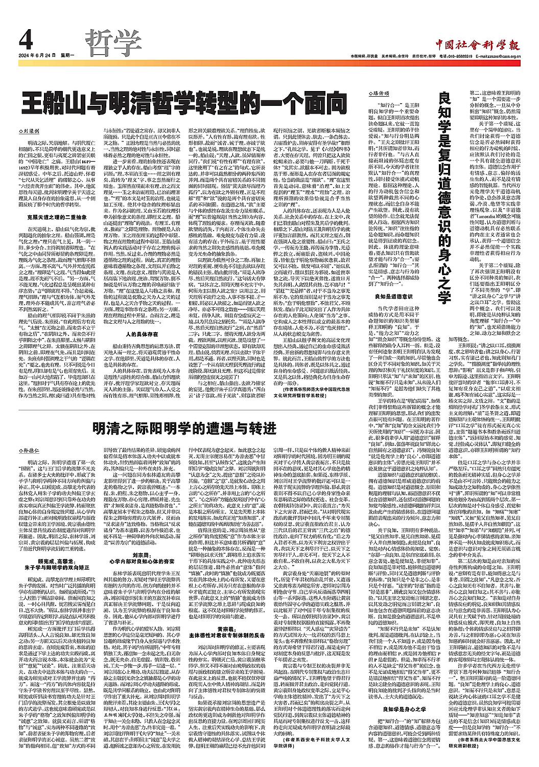 (通讯员 马婧)6月24日,《中国社会科学报》A04版刊发公司哲学系孙德仁老师文章《明清之际阳明学的遭遇与转进》。全文如下: