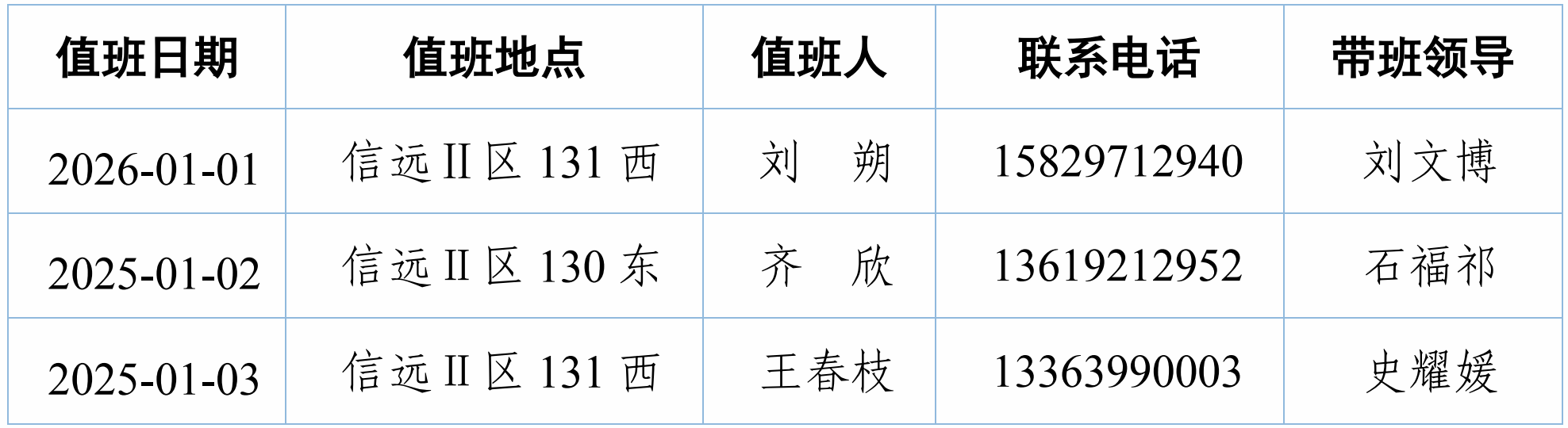 按照公司《关于2026年元旦放假时间安排的通知》要求,现将公司2026年元旦假期值班安排如下: