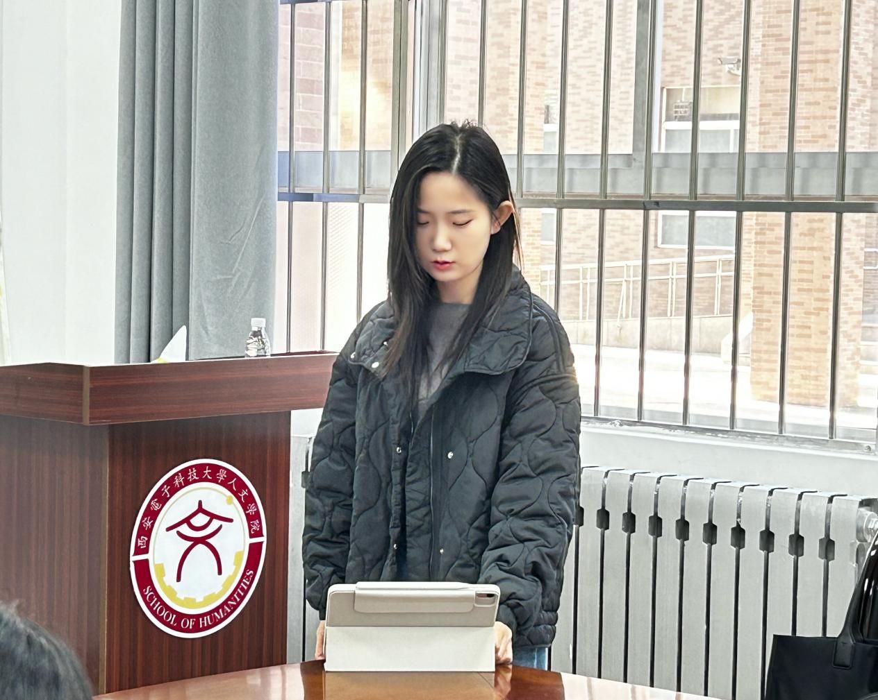 王思琛老师在评议环节首先对奚月晴同学的文献梳理工作表示了肯定,系统地整理并分析相关文献资料,能够为后续研究打下坚实的基础。随后针对此次汇报,王老师指出“本体宇宙论”与“圣人观”两者的关系不够明确。在后续论文撰写过程中,应当加强对这两者间关系的研究,尝试从不同的角度出发,补充和完善相关内容。