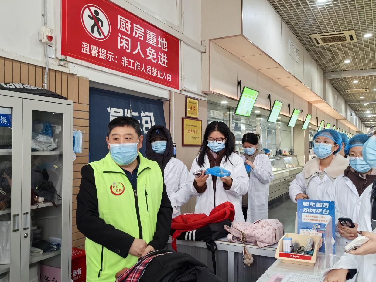 参观开始前,同学们在丁香餐厅入口处领取并穿戴好统一的工作服,以确保参观过程的安全与规范。同学们在老师的带领下,参观了丁香餐厅的各个区域,包括烹饪间、备餐间、食材储存区等。参观过程中,丁香餐厅一层负责人梁延军向同学们悉心介绍了食材从采买到上餐桌的全流程,以及食堂日常运营的规范流程与管理细则。同学们也踊跃提问,对食品品质把控与食堂高效管理等方面进行了深入了解。梁延军说到:“餐厅内的食品安全培训是一项极为关键的工作。我们始终将食品安全视作重中之重,以切实的行动守护每一位师生的饮食安全,让大家吃得安心,吃得放心”。