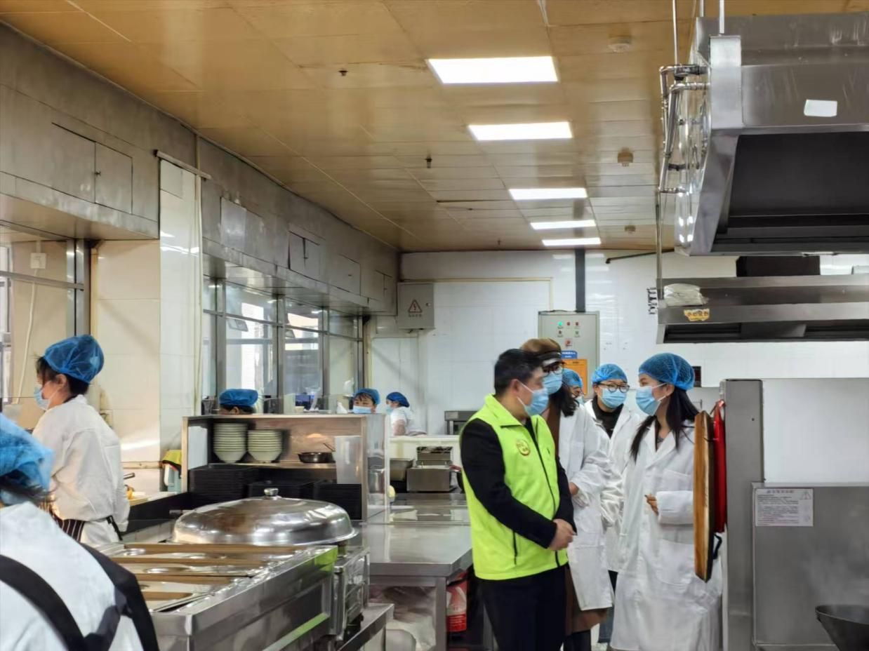 接着,同学们来到了公司的食堂后厨。带队师傅全面讲解了食堂饭菜的制作步骤和各个区域的作用,着重指出了食品在储存、加工和烹饪过程中的关键要点。工作人员还演示了蔬菜和肉类的清洗、切配、烹饪流程,使员工们对整个操作过程有了更深入的了解。