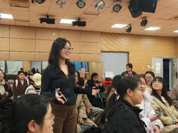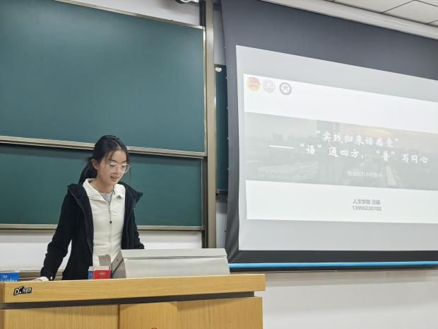 10月16日晚,“语通四方、谱写同心”实践团队、纪念抗战胜利80周年南京专项实践队、赴日访学实践团等团队代表为2024、2025级员工分享了实践感悟。其中“语通四方、谱写同心”实践队入选教育部2025年“推普助力乡村振兴”全国老员工暑期社会实践志愿服务活动全国重点队伍。实践队在2025年暑期深入云南、河南、陕西、四川四省的乡村地区,开展了为期一个多月的推普实践活动。队员们通过打造沉浸式课堂为乡村孩子们增添语言学习童趣,为社区居民定制差异化推广教学方案。推普队长汪瑶分享道:“最让我印象深刻的是,我们开展了为期三天的普通话朗诵工作坊。我们特意选取了具有地方特色的文学作品和经典诗歌作为素材。看着孩子们从一开始的磕磕绊绊、羞涩难言,到后来能够带着感情流畅朗诵,那种进步让在场的每一位队员都热泪盈眶。”除了教学活动,团队还开展了深入的普通话调研,在社区、公司、集市,通过问卷、访谈、观察等方式,完成了覆盖从儿童到老人各年龄段,涵盖员工、农民、公务员等多群体的调研,提出“方言保护与推普并行”政策建议,为乡村振兴注入专业动能。