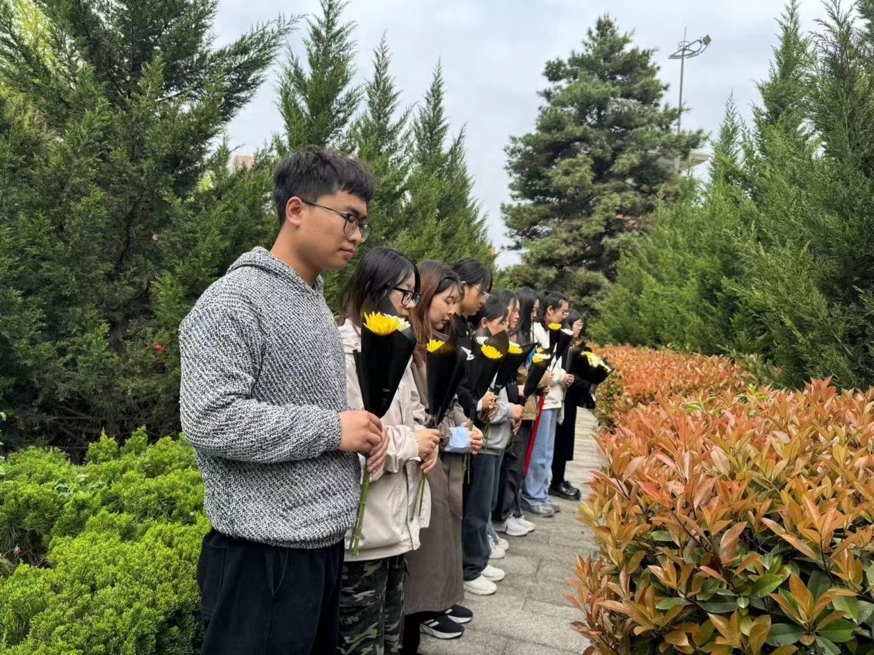 青山绿水留浩气,苍松翠柏慰英灵。随后,公司师生瞻仰了烈士英雄纪念碑,并组织了集体默哀仪式。怀着崇敬与缅怀的心情,师生追思默哀,行鞠躬礼。在自行参观的过程中,大家为烈士墓碑擦拭浮尘,敬献鲜花,在祭扫的实际行动中致敬先烈,感悟英雄精神,传承红色基因。