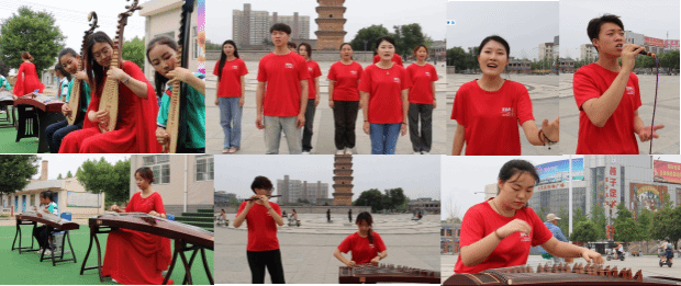 为提升活动的文化影响力,实践队来到蒲城县文化广场等地进行文艺快闪活动。活动在悠扬古筝曲《高山流水》中拉开序幕,瞬间吸引了广场上不少来往的过客。古筝、笛子合奏《春到湘江》展现了音乐跨越时空的共鸣与对话。歌曲《仰望星空》《如愿》接叙着温柔缱绻的风格,使人们在炎炎夏日感受到似有微风拂过。最后,实践队全体成员合唱歌曲《万疆》,用歌声讲述着这片土地上的故事与梦想。表演结束后,人群爆发了热烈的掌声。