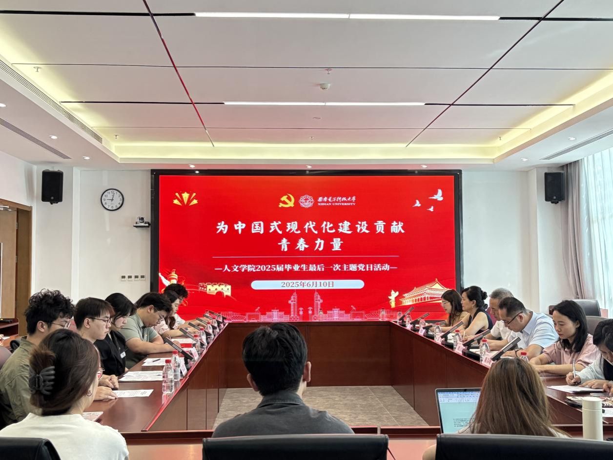 活动中,本科生党支部以“青春在党旗下闪光”为主题,回顾了本届毕业生党员的成长足迹与支部建设成果。本科毕业生代表哲学专业涂凯旋、董志浩,汉语言文学专业周若男、蒋天翔,录音艺术专业许怡翾,研究生毕业生代表吴娜,分享了他们在西电的求学感悟与未来志向。他们结合个人职业发展,深情地讲述了将论文写在祖国大地上的学术信念、投身基层公共服务的初心、奔赴西部支教的奉献情怀、扎根边疆的家国选择、讲好中国故事的理想以及在科技自立自强中展现的青年担当。