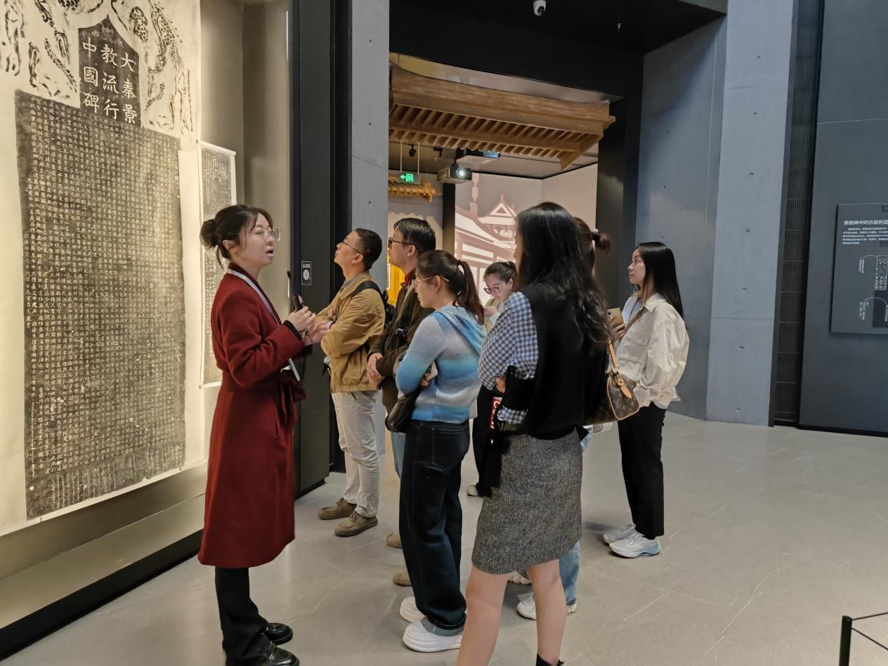 活动首站聚焦碑林博物馆核心展区,教师们沿碑石艺术长廊系统参观了从秦汉到明清的经典碑刻,近距离感悟中华优秀传统文化的历史底蕴与艺术价值,在“石头上的史书”中汲取精神养分。随后,老师们参观了“丝绸之路碑刻专题展”“历代墓志精品展”等特色展览,在讲解员的细致解读下,深入了解不同历史时期碑刻所承载的社会文化信息与中外文明交流互鉴的历史脉络。在参观过程中,老师们不时驻足凝视,围绕碑刻的书法艺术、史料价值及文化内涵展开热烈讨论,将专业研究视角与党建学习需求相结合,在交流碰撞中深化对传统文化时代价值的理解。